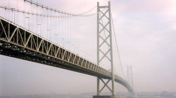 The Akashi-Kaikyo Bridge links Maiko with Matsuho. Its central span is the longest of any suspension bridge in the world. The 1995 Kobe earthquake stretched its original length of 1,990 meters to 1,991.